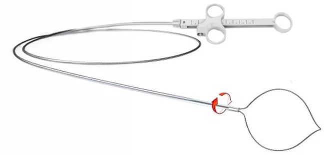 A ansa de polipectomia é utilizada em combinação com o endoscópio para cortar pólipos ou outros tecidos redundantes com corrente de alta frequência no trato digestivo. Tem o tipo rotativo opcional, com garantia de uma rotação única, e fio macio moderado que evita o deslizamento.