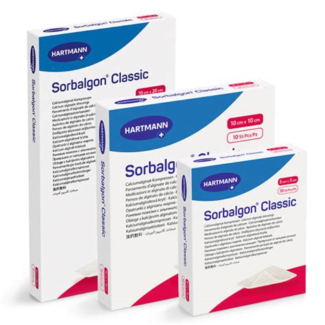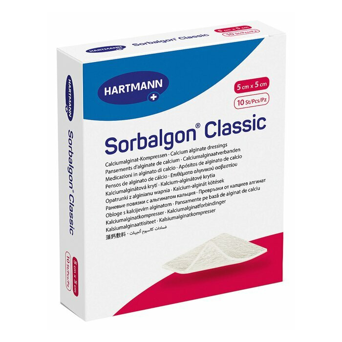 Apósitos de alginato de cálcio Sorbalgon Classic, 5 x 5 cm - cx.10