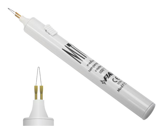 Eletrocautério é um dispositivo descartável esterilizado de bateria descartável para a cauterização de pequenos vasos- a temperatura da ponta é 1200 ° C.