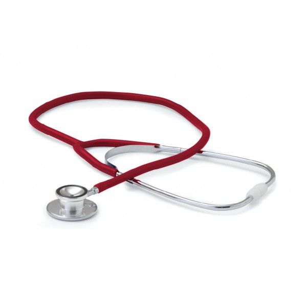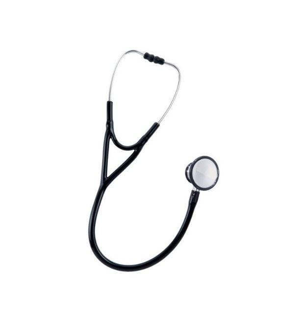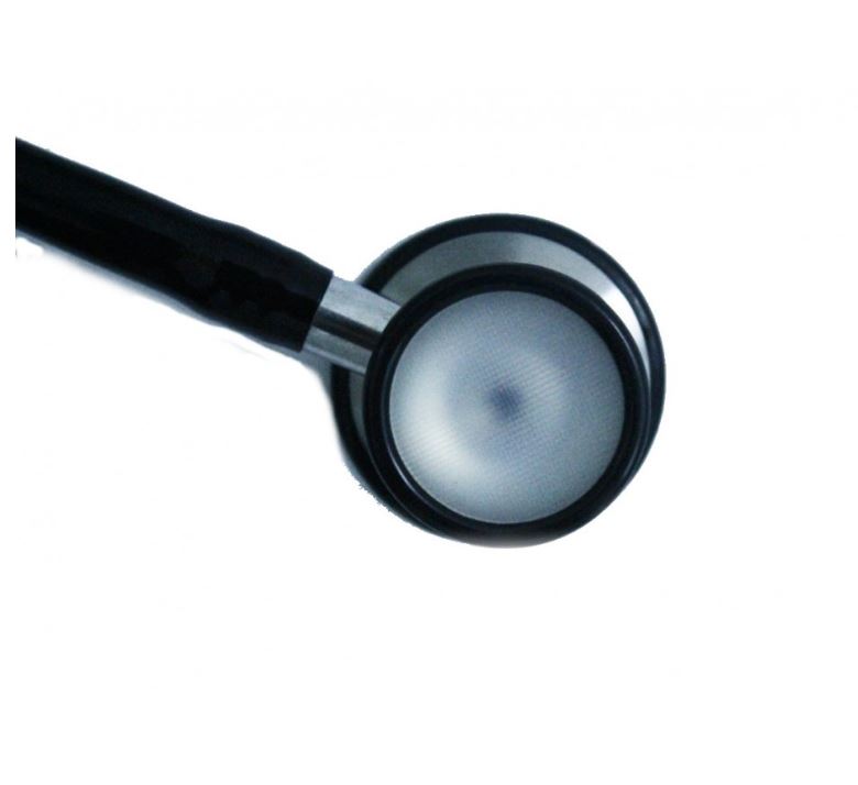 Estetoscópio de campânula dupla, ideal para uso em contexto doméstico ou para o ensino a estudantes de enfermagem.