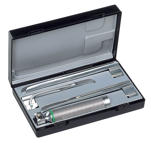 - Lâminas em FO Macintosh e Miller em aço inoxidável, com condutor de luz amovível